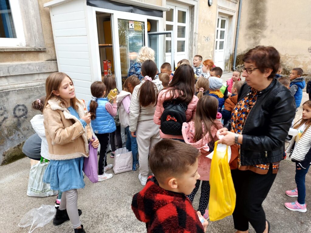 U pratnji nastavnica Vesne Vrdoljak i Maje Vukadin učenici (od 1.-5. razreda) iz produženog boravka OŠ fra Lovre Karaule značajnom donacijom prehrambenih proizvoda napunili su Hladnjak dobrote.