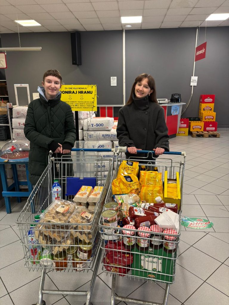 Učenice Gimnazije Livno zajedno sa stručnom službom škole – Marijom Vukadin i Anđelom Koprčina kupile su namirnice i kućne potrepštine te rasporedile u šest paketa za šest obitelji. Pakete su na kućne pragove dostavili Vlado i Marija.