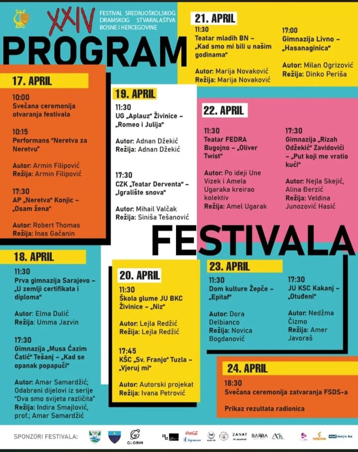 Glumci i glazbenici naše Gimnazije Livno, u pratnji profesora Katarine Džeko i Dinka Periša i ove godine su sudjelovali na Festivalu srednjoškolskog dramskog stvaralaštva BiH, XXIV. po redu.